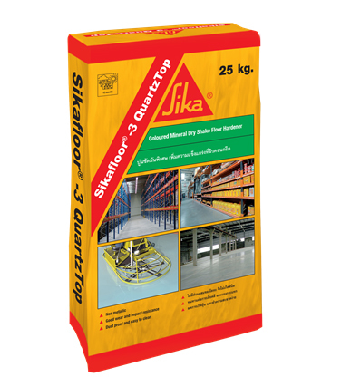 Sikafloor-3 QuartzTop - однокомпонентная готовая цветная сухая смесь для изготовления бетонных полов с упрочненным верхним слоем. Состоит из специально подобранного кварцевого наполнителя, цементов, специальных добавок и пигментов.